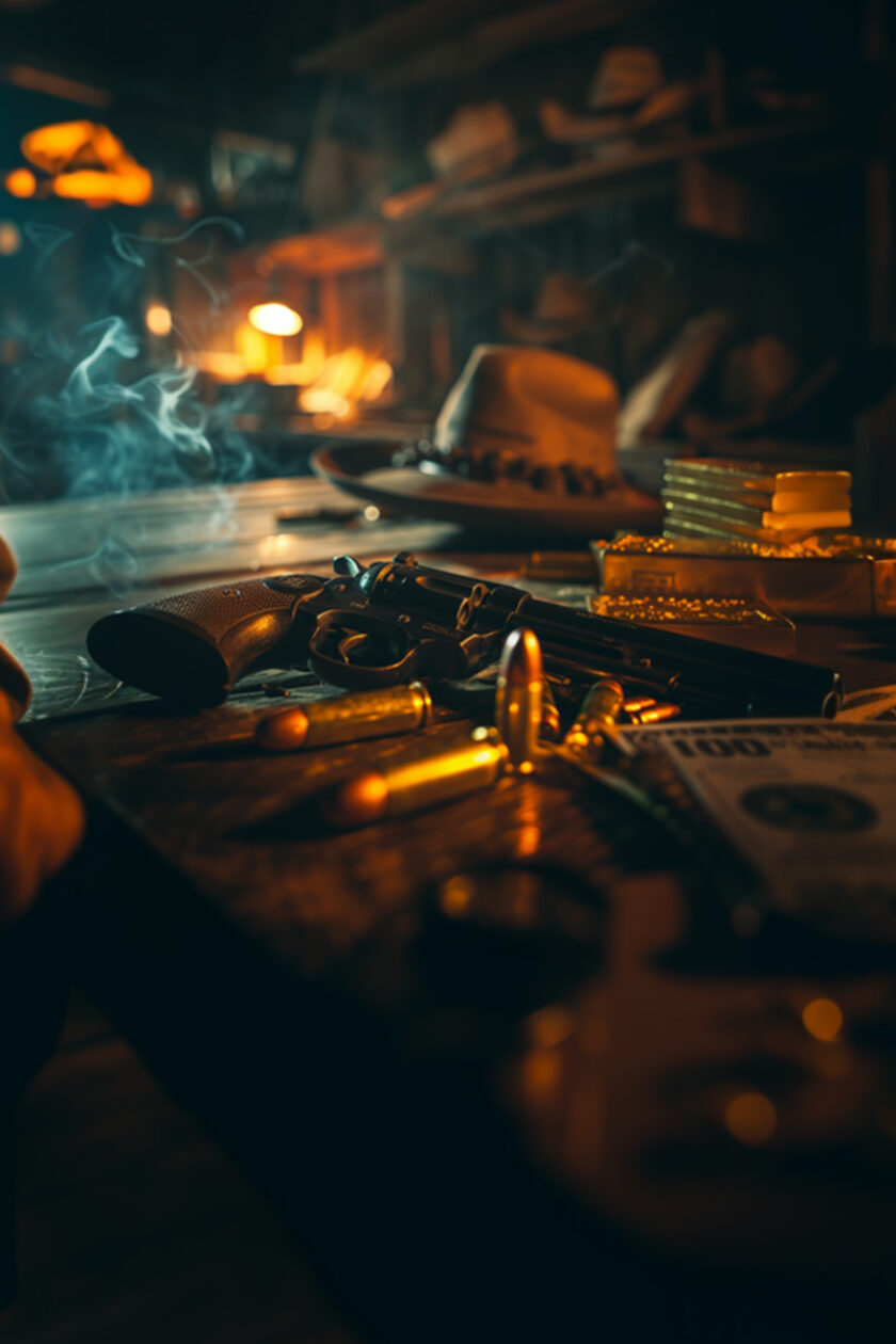 1861, Virginia City , le patron du saloon le plus populaire de la ville détient un magot inestimable illégalement acquis en volant et pillant les diligences. Barman le jour, brigand la nuit, est-il réellement celui que l’on surnomme le “Terrible Black Gun” ?
